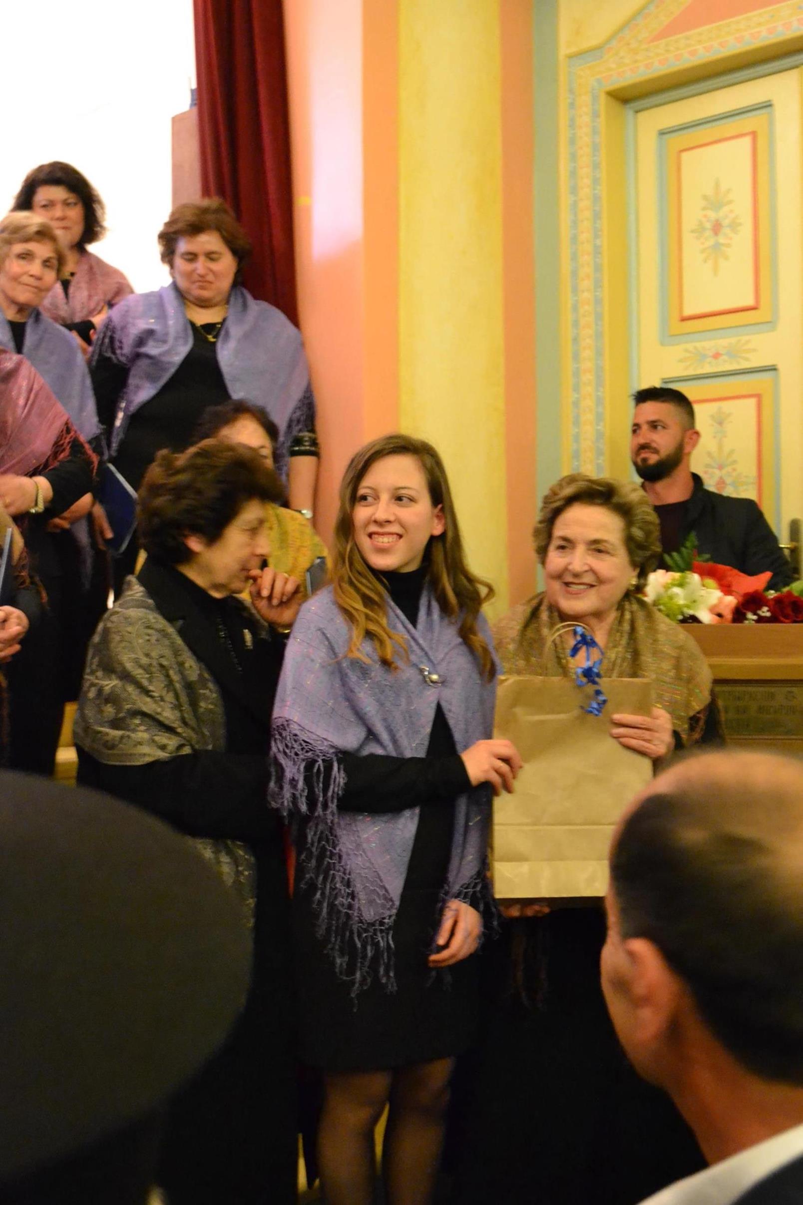 Ἡ Πρόεδρος τοῦ Λυκείου Ἑλληνίδων Καλύμνου ἔδωσε στόν Σεβασμιώτατο ἕνα κεντημένο Σταυρό, ἔργο μέλους τοῦ Λυκείου, καθώς κι ἕνα καπάδικο σφουγγάρι πού λόγῳ τοῦ ἰδιαιτέρου σχήματος τό ὀνόμασαν “πρόσφορο”. Ὁ Σεβασμιώτατος προσέφερε στό Λύκειο Ἑλληνίδων Καλύμνου μία χειροποίητη εἰκόνα τῆς Παναγίας καί σέ ὅλα τά μέλη τῆς ἀποστολῆς ἀναμνηστικά δῶρα.