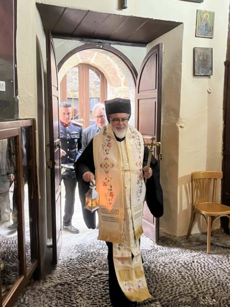 Μετά το πέρας της Ακολουθίας ο Σεβασμιώτατος ευχήθηκε σε όλους τους παρόντες μεταφέροντας τους το μήνυμα της Αναστάσεως, τους μετέδωσε το Άγιο Φως και μοίρασε πασχαλινά αυγά.