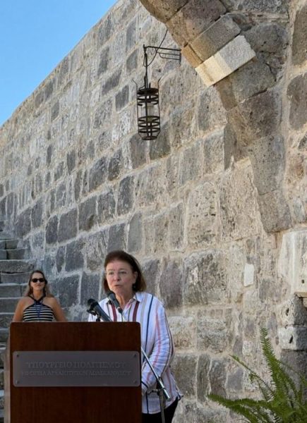 ​Η Υπουργός Πολιτισμού, Λίνα Μενδώνη, στο πλαίσιο της επίσκεψης εργασίας που πραγματοποίησε στην Κω, τέλεσε τα εγκαίνια του έργου της αποκατάστασης του Κάστρου της Νερατζιάς.