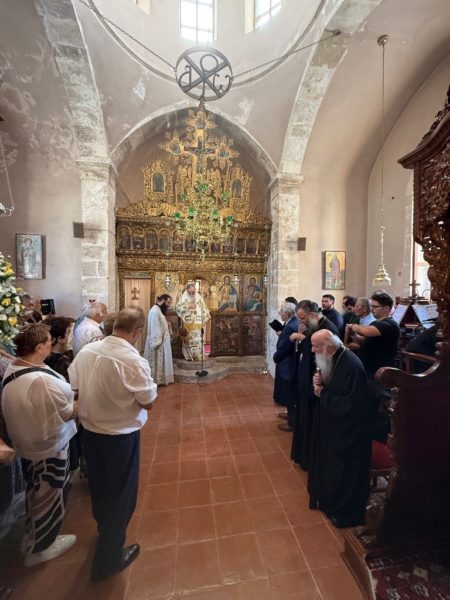 Το απόγευμα της Παρασκευής, 22 Αυγούστου 2025 τελέστηκε ο Πανηγυρικός Εσπερινός στην Ιερά Μονή Αγίων Ραφαήλ, Νικολάου και Ειρήνης Σπηλίου, όπου χοροστάτησε ο Θεοφιλέστατος Επίσκοπος Κνωσού κ. Μεθόδιος, συμπροσευχομένου του εορτάζοντος Ποιμενάρχου κ. Ειρηναίου και του Σεβασμιωτάτου Μητροπολίτου Ρεθύμνης και Αυλοποτάμου κ. Προδρόμου.