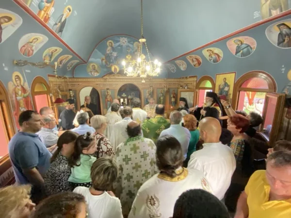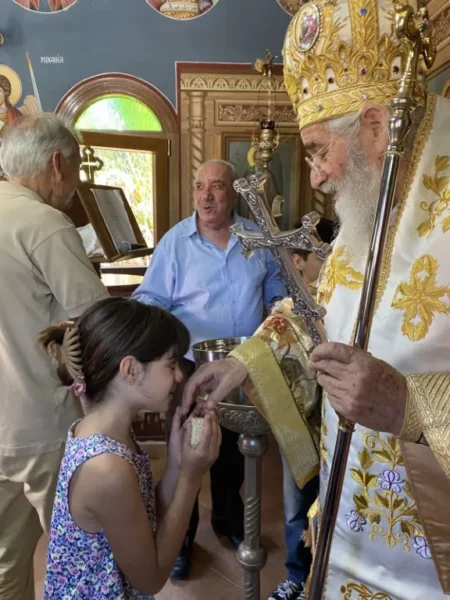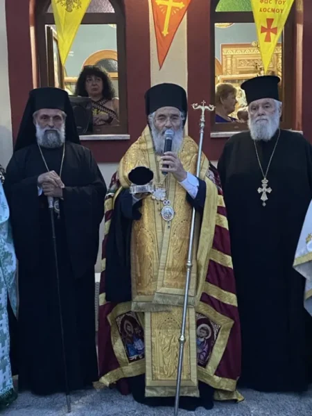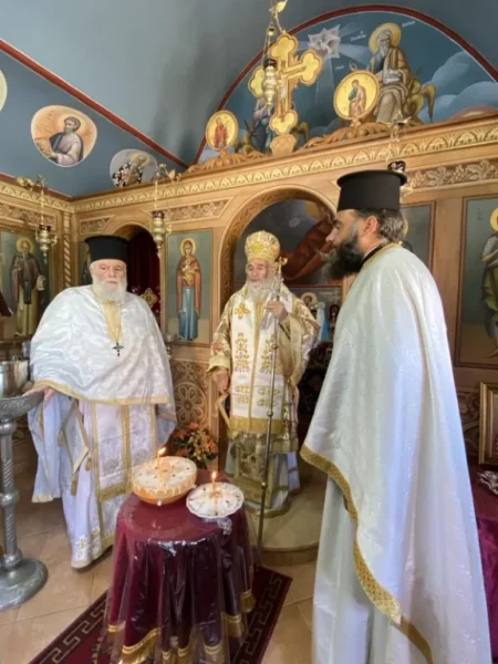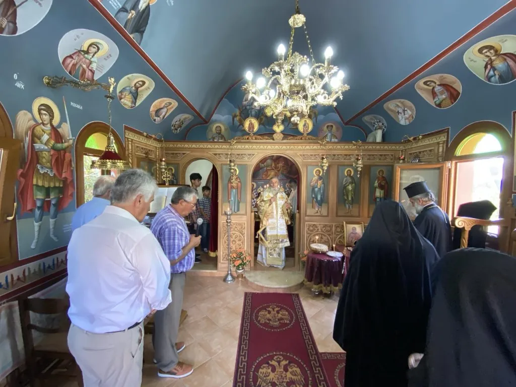 Το πρωί του Σαββάτου (7-6-2025), στο εορτάζον ιερό παρεκκλήσιο του Οσίου Παϊσίου Παναγή Μπασιά, στην περιοχή «Γερμανός» της νήσου Λέρου, της οικογενείας Δημητρίου και Άννης Αναστασίου, ετελέσθη Αρχιερατική Θεία Λειτουργία, υπό του Σεβασμιωτάτου Μητροπολίτου κ. Παϊσίου, παρουσία του Θεοφιλεστάτου Επισκόπου Στρατονικείας κ. Στέφανου, συμπαραστατουμένου υπό του Αρχιερατικού Επιτρόπου Λέρου π. Νικοδήμου Φωκά και του Αιδεσιμωτάτου π. Παϊσίου Αγγελάκη. Στο ιερό αναλόγιο έψαλλαν οι ιεροψάλτες Ισίδωρος Λιβανός και Χαράλαμπος Γιαμαίος.