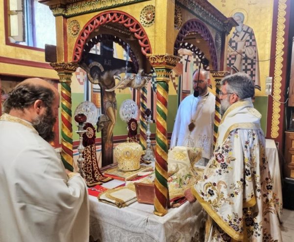 Στο ιερό αναλόγιο έψαλλε κατανυκτικά ο χορός ιεροψαλτών υπό την διεύθυνση του Πρωτοψάλτου Ελευθερίου Χατζηλάρη.
