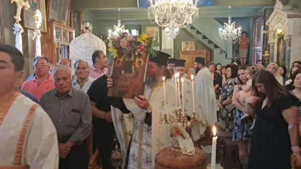 Μετά τον εσπερινό, στον προαύλιο χώρο του ναού, ακολούθησε παραδοσιακό γλέντι σε εορταστικό κλίμα. Οι παρευρισκόμενοι απόλαυσαν εκλεκτά εδέσματα, που είχαν ετοιμαστεί με μεράκι από μέλη της Εκκλησιαστικής Επιτροπής και ενορίτες, ενώ η βραδιά πλαισιώθηκε μουσικά από το τοπικό σχήμα “Καλιδωνάκια”, προσφέροντας κέφι και ψυχαγωγία σε μικρούς και μεγάλους.