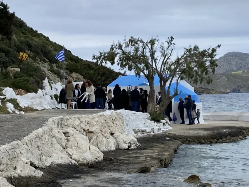 Εσπερινός Αγίου Γεωργίου στα «Βουρλίδια» Λέρου υπό του εφημερίου π. Δαμασκηνού Παλαπουγιούκ.