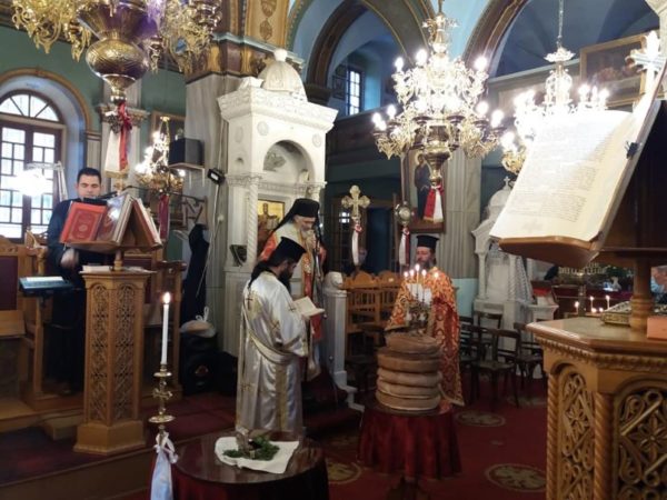 Στο ιερό αναλόγιο έψαλλαν οι ιεροψάλτες Μανόλης Βαγιανός και Στάθης Τσαγκάρης.