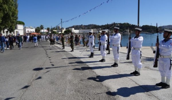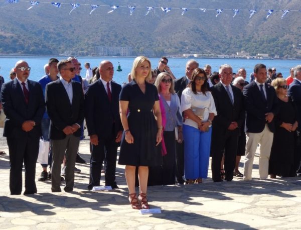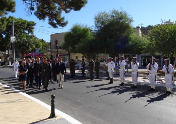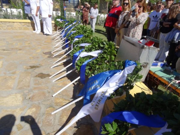 Μετά το πέρας της Δοξολογίας, στο μνημείο των πεσόντων του Α/Τ «Β. Όλγα», έλαβε χώρα επιμνημόσυνος δέησις υπό του Σεβασμιωτάτου Μητροπολίτου κ. Παϊσίου, προσκλητήριο πεσόντων με ριπές όπλων, ενός λεπτού σιγή, καταθέσεις στεφάνων, ανάκρουση Εθνικού Ύμνου από την μπάντα της Ταξιαρχίας 80ΑΔΤΕ, και εν συνεχεία ο Αρχηγός Στόλου Αντιναύαρχος Παναγιώτης Λυμπέρης ΠΝ, ως εκπρόσωπος του ΓΕΕΘΑ, εκφώνησε τον πανηγυρικό της ημέρας.