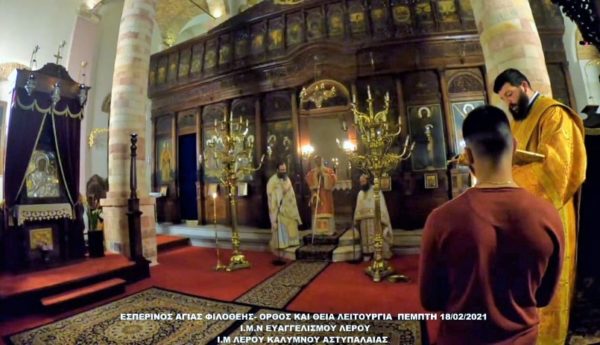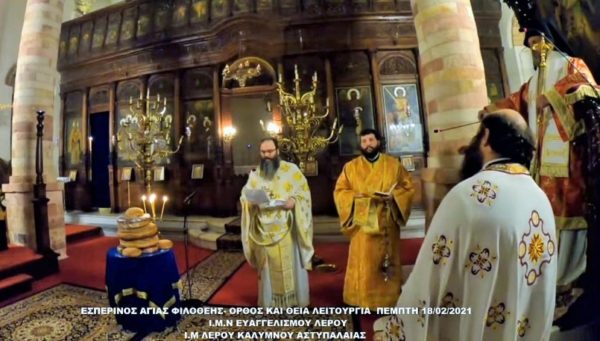 Το απόγευμα της Πέμπτης 18/2, στον Ιερό Μητροπολιτικό Ναό «Ευαγγελισμός της Θεοτόκου» Λέρου, τελέστηκε Αρχιερατικός Εσπερινός επί τη μνήμη της Οσιομάρτυρος Φιλοθέης της Αθηναίας, και κατόπιν ο Όρθρος και η Θ. Λειτουργία.