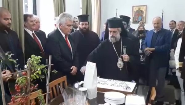 Μετά το πέρας της Δοξολογίας ο Θεοφιλέστατος έκοψε την βασιλόπιτα της Ιεράς Μητροπόλεως, μεταφέροντας τις ευχές του Σεβασμιωτάτου Μητροπολίτου κ. Παϊσίου, για ένα έτος ευλογημένο, ειρηνικό, καρποφόρο, υγιεινό, τονίζοντας ότι με πίστη στον Θεό και αισιοδοξία θα ξεπεράσουμε τις όποιες δοκιμασίες και δυσκολίες εμφανιστούν.