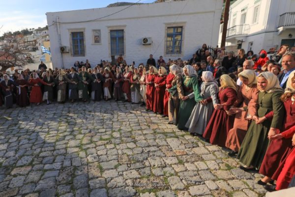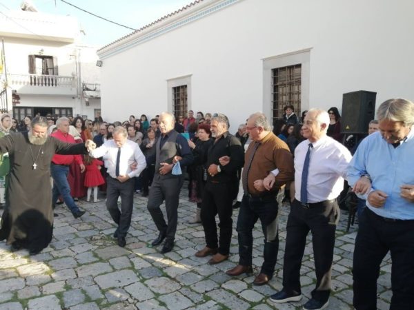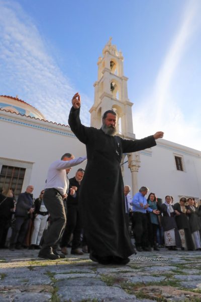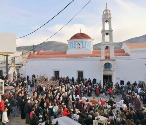 Από νωρίς το μεσημέρι στις 3 , στον αυλόγυρο του Ναού συγκεντρώθηκε πολύ κόσμος και Καλυμνιές όλων των ηλικιών, ντυμένες με τις παραδοσιακές στολές για τον χορό της Τυρινής που αναβιώνει κάθε χρόνο και εν συνεχεία τον εσπερινό του «συγχώριου» που ακολούθησε.