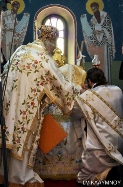 Ο Σεβασμιώτατος χοροστάτησε στην Ακολουθία του Όρθρου και προεξήρχε της Θείας Λειτουργίας, συμπαραστατούμενος υπό του εφημερίου π. Νικολάου Καζαβούλη και ιερέων της νήσου Καλύμνου.