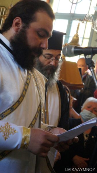 Ο Σεβασμιώτατος χοροστάτησε στην Ακολουθία του Όρθρου και προεξήρχε της Θείας Λειτουργίας, συμπαραστατούμενος υπό του εφημερίου π. Νικολάου Καζαβούλη και ιερέων της νήσου Καλύμνου.