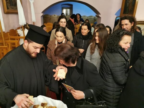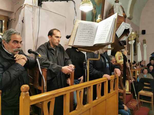 Στο αναλόγιο ο Πρωτοψάλτης Σπυρίδων Ζαΐρης μαζί με τον Παναγιώτη Τρικοίλη και Δημήτρη Ζαΐρη, ενώ πολλοί ήταν οι πιστοί που παρέστησαν στον εσπερινό.