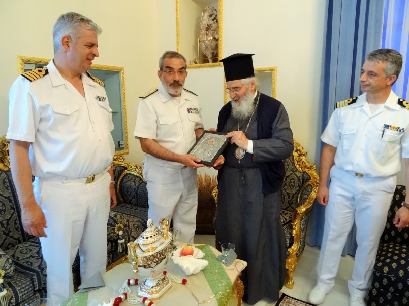 Ο Μητροπολίτης, ο οποίος συνοδευόταν από τον Αρχιερατικό Επίτροπο π. Νικόδημο Φωκά, εδέχθη με μεγάλη χαρά τον Ναύαρχο και τους επιτελείς στα γραφεία της Ιεράς Μητροπόλεως, στο «Πατριαρχείο», λέγοντάς του ότι «είναι μεγάλη η τιμή να επισκεφθεί την Μητρόπολη και τον ίδιο».