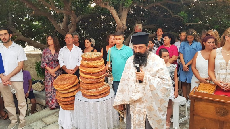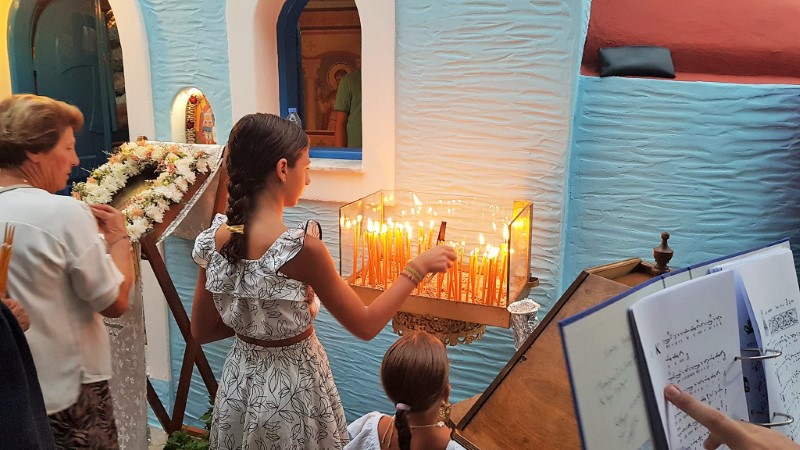 Κατά τον Εσπερινό παρέστη η καθηγουμένη της Ιεράς Μονής Αγίων Αγγέλων μοναχή Παρασκευή, η μοναχή Ευλογία, οι Αρχές και τοπικοί παράγοντες της νήσου και πλήθος ευλαβών προσκυνητών.