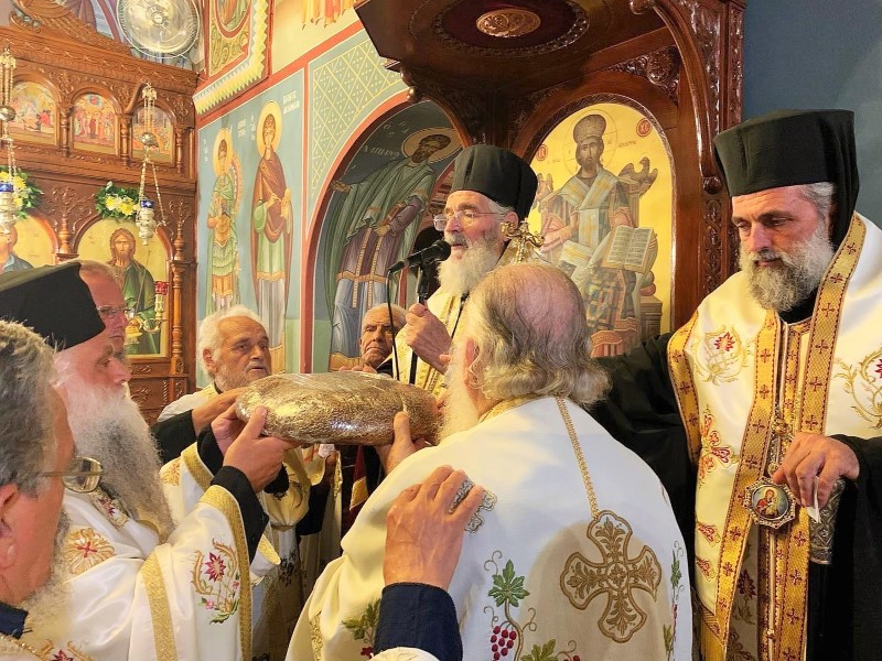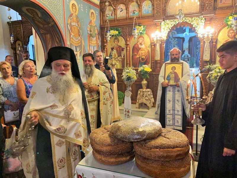 Ο Μητροπολίτης ευλόγησε τους προσφερόμενους άρτους καθώς και τις δεκάδες φανουρόπιτες που προσκόμισαν ευσεβείς χριστιανοί προς ευλογία.