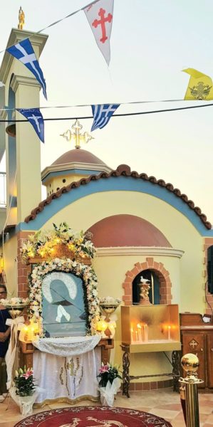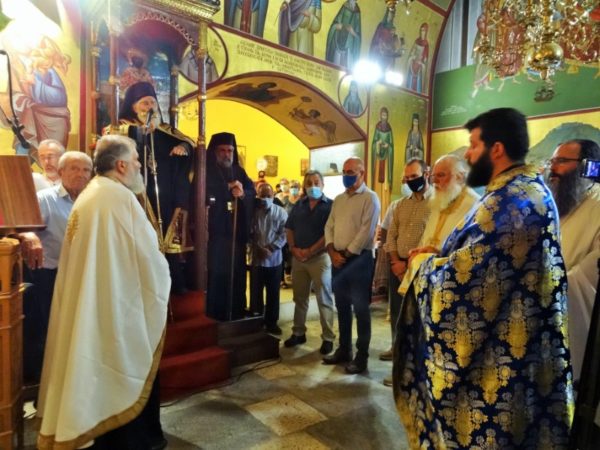 Ο Σεβασμιώτατος Μητροπολίτης κ. Παΐσιος, αφού είχε επιστρέψει από την Αστυπάλαια που είχε μεταβεί για τον εορτασμό του Δεκαπενταύγουστου στην Παναγία την Πορταΐτισσα, χοροστάτησε στον Εσπερινό της παραμονής.