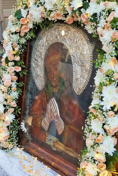 Μετά την αρτοκλασία, από τον ιερό κλήρο, τους ιεροψάλτες, αλλά και το εκκλησίασμα, μέσα σε κλίμα κατάνυξης, εψάλησαν τα Εγκώμια της Παναγίας μας.