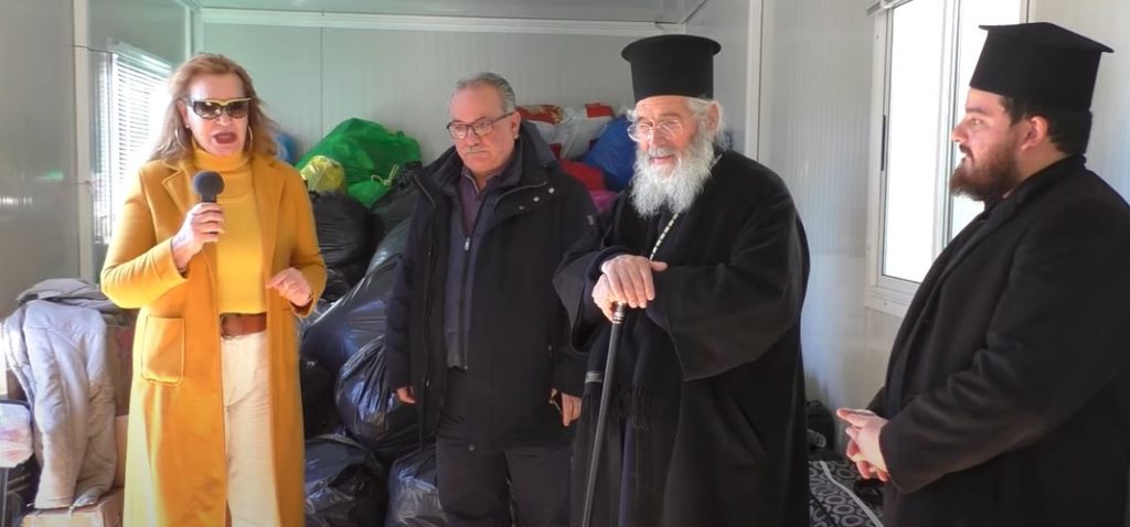 Τα είδη πρώτης ανάγκης συγκεντρώνονται σε ειδικά κοντέινερ που βρίσκονται στο χώρο πάρκινγκ της παραλιακής οδού Αγίου Νικολάου, στην Κάλυμνο από την Τρίτη 14 Φεβρουαρίου 2023 και χθες Πέμπτη, ο Σεβασμιώτατος Μητροπολίτης Λέρου, Καλύμνου και Αστυπάλαιας κ. Παΐσιος με τον Έπαρχο Μανώλη Μουσελλή επισκέφθηκε στο χώρο συγκέντρωσης, όπου τα μέλη του Συλλόγου Γυναικών «ΗΡΑ» βοηθούν στην τακτοποίηση των συγκεντρωθέντων ειδών.