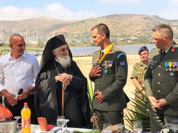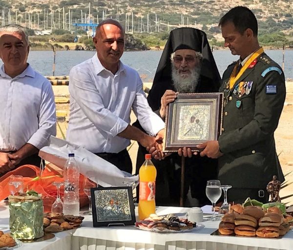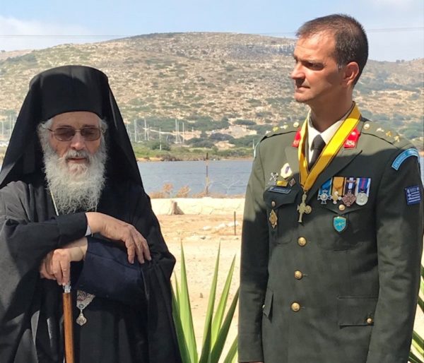 Ο Μητροπολίτης απένειμε στον αποχωρούντα Διοικητή, τον Χρυσούν Σταυρόν της εν Δωδεκανήσω Εκκλησίας του Οικουμενικού Θρόνου, σε ένδειξη προσήλωσης του ιδίου και της οικογενείας του, σεβασμού, τιμής και ευγνωμοσύνης για το έργο που προσέφερε και επιτέλεσε στην  νευραλγική θέση που υπηρέτησε, τη βοήθεια που προσέφερε στο νησί και στην άριστη συνεργασία του με τους φορείς και την τοπική Εκκλησία.