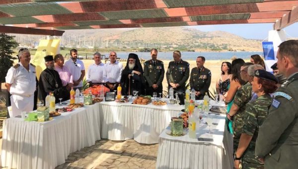 Πριν την τελετή παράδοσης – παραλαβής ο Μητροπολίτης Λέρου τέλεσε δέηση, συμπαραστατουμένου υπό του Θεοφιλεστάτου Επισκόπου Στρατονικείας κ.Στεφάνου και του πρεσβυτέρου π.Γεωργίου Γαμπιέρη.