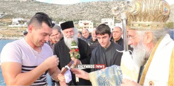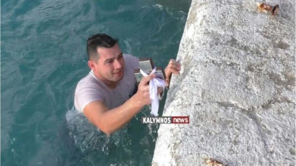 Ο μοναδικός νεαρός που βούτηξε στα ήρεμα νερά των Βλυχαδιών για να πιάσει το Σταυρό ήταν ο Βασίλης Κλειδαράς.