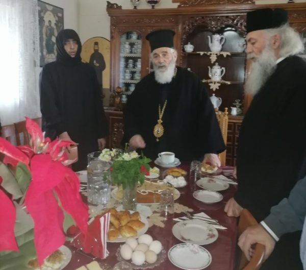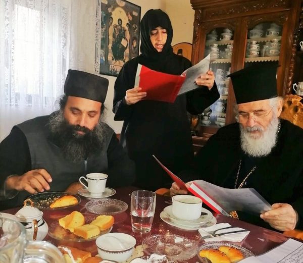 Τέλος οι μοναχές παρέθεσαν λιτή τράπεζα σε όλους τους επισκέπτες και οι μοναχές έψαλλαν παραδοσιακά κάλαντα των Θεοφανείων.