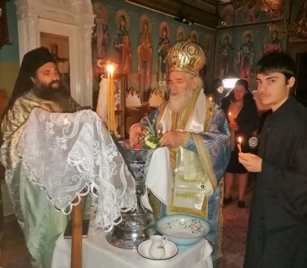Μετά το πέρας της Θείας Λειτουργίας, μετέβησαν όλοι στο λιμανάκι των Βλυχαδιών, όπου ο Μητροπολίτης αγίασε τα ύδατα και έρριψε το Σταυρό στη Θάλασσα.