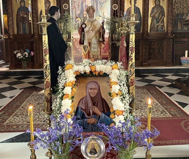 Κατά την Θεία Λειτουργία τέθηκε προς προσκύνηση η Τιμία Κάρα και η Ιερά Εικόνα της Οσίας Γαβριηλίας.