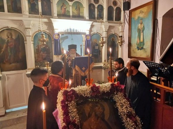 Στην Ακολουθία χοροστάτησε ο Σεβασμιώτατος Μητροπολίτης Λέρου, Καλύμνου και Αστυπαλαίας κ. Παΐσιος, συμπαραστατούμενος υπό του εφημερίου π. Μιχαήλ Μακαρούνα και του Ιεροδιακόνου της Ιεράς Μητροπόλεως π. Σταύρου Μάρθα, παρουσία πλήθους πιστών, οι οποίοι ήρθαν να προσκυνήσουν το Νυμφίο Χριστό.