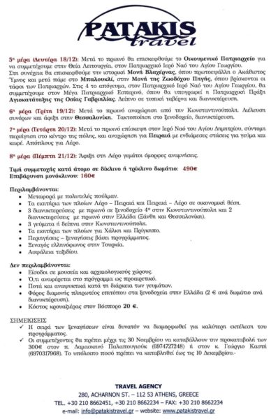 Ακολουθεί αναλυτικό πρόγραμμα της εκδρομής: