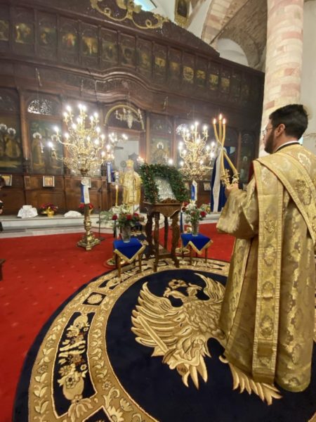 Μετά την ανάγνωση του Ιερού Ευαγγελίου, ο γραμματεύς της Ιεράς Μητροπόλεως κ. Γεώργιος Χρυσούλης, ανέγνωσε την Πατριαρχική Απόδειξη επί τοις Χριστουγέννοις, με την οποία ο Οικουμενικός Πατριάρχης κ.κ. Βαρθολομαίος, απηύθυνε εόρτιες Πατριαρχικές ευχές επί τη μητροπόλει των εορτών.