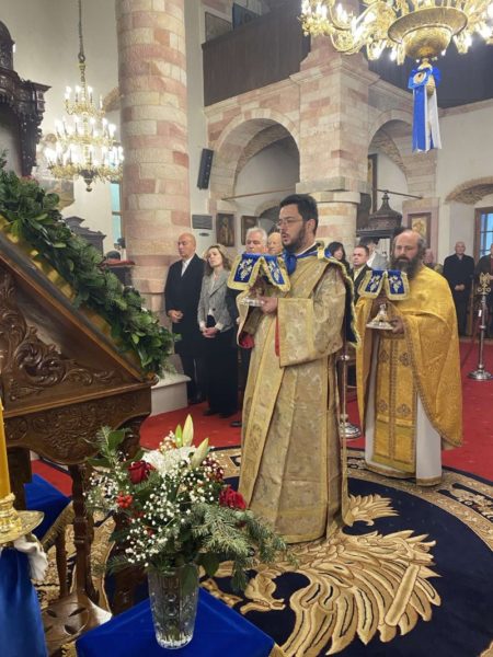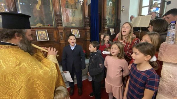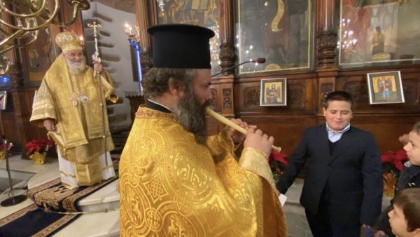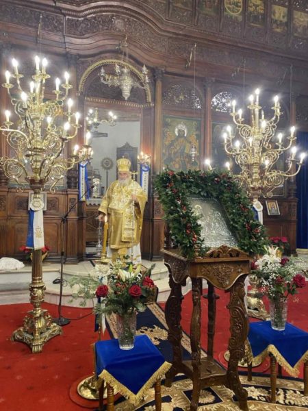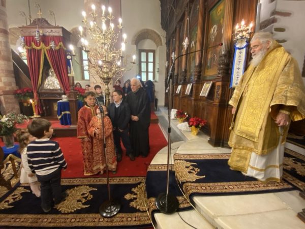 Μετά το πέρας της Θείας Λειτουργίας, με ευθύνη του εφημερίου, παιδιά της ενορίας έψαλλαν τα Χριστουγεννιάτικα κάλαντα στον Μητροπολίτη, τις Αρχές και το εκκλησίασμα, και μάλιστα με συνοδεία φλογέρας που έπαιξε ο εφημέριος του ναού π. Νικόλαος Ταχλιαμπούρης.