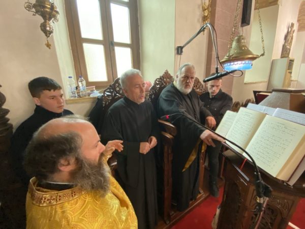 Στο ιερό αναλόγιο έψαλλε η χορωδία του ναού υπό την διεύθυνση του πρωτοψάλτου της Ιεράς Μητροπόλεως Ελευθερίου Χατζηλάρη.