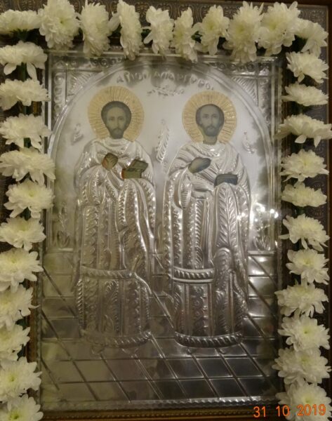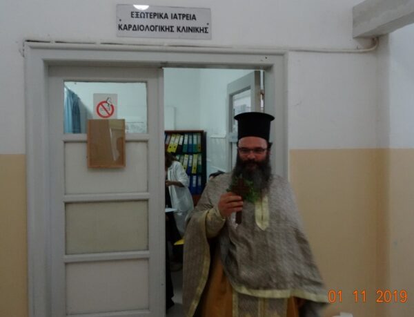Μετά την Θεία Λειτουργία τελέσθηκε Αγιασμός, και κατόπιν ο Εφημέριος επισκέφθηκε τις κλινικές του νοσοκομείου, και ευχήθηκε στους ασθενείς, στο ιατρικό και νοσηλευτικό προσωπικό «καλό μήνα, και οι Άγιοι Ανάργυροι να χαρίζουν υγεία σε όλο τον κόσμο».