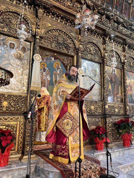 Προ του τέλους της πανηγυρικής Θείας Λειτουργίας ο Πανοσιολ. Αρχιμανδρίτης π. Ιερώνυμος Σχίζας, Πρωτοσύγκελλος της Τοπικής μας Εκκλησίας, ανέγνωσε ευκρινώς την Πατριαρχική Απόδειξη των Χριστουγέννων, αποδίδοντας το νόημά της, η οποία ενθουσίασε τους πιστούς για το περιεχόμενό της.