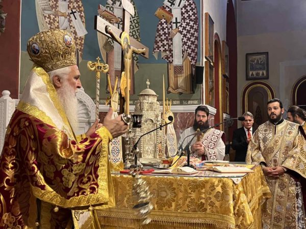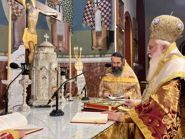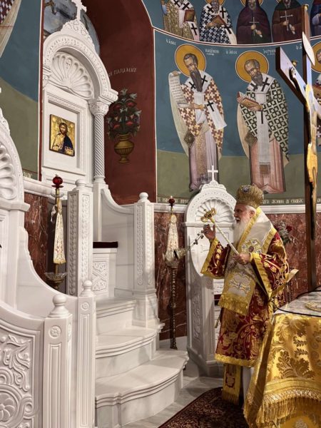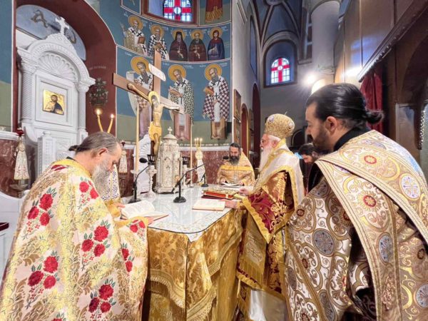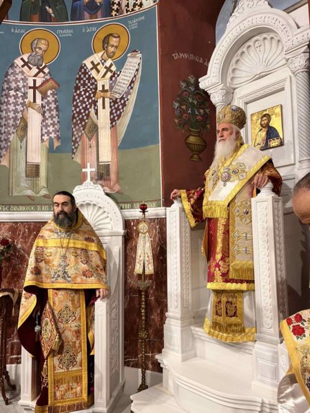 Ο Σεβ. Ποιμενάρχης χοροστάτησε στον Όρθρο και προεξήρχε στη Θεία Λειτουργία με συλλειτουργούς τους Εφημερίους π. Ιερώνυμο, π. Νικόλαο και τους Διακόνους π. Ηλία και π. Κυριακό.