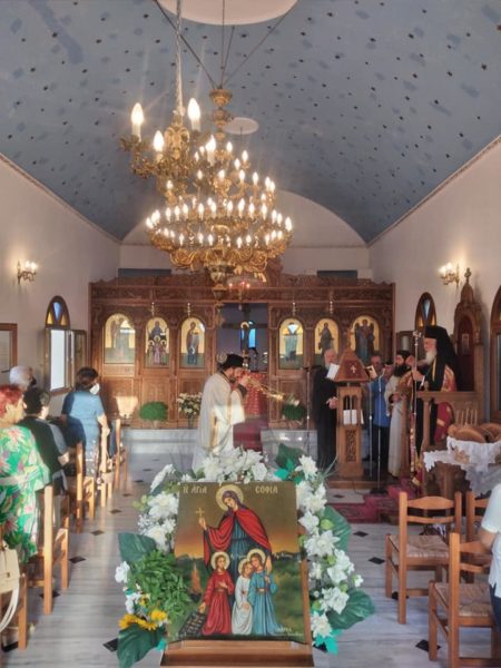 Κατά την κυριώνυμο ημέρα της εορτής, τελέστηκε Πανηγυρικός Όρθρος και Θεία Λειτουργία στον πανηγυρίζοντα Ιερό Ναό Αγίας Σοφίας στην Ομώνυμο Κοινότητα της νήσου μας ιερουργούντος του Σεβασμιωτάτου κ. Ιεροθέου.