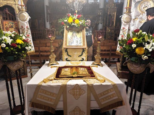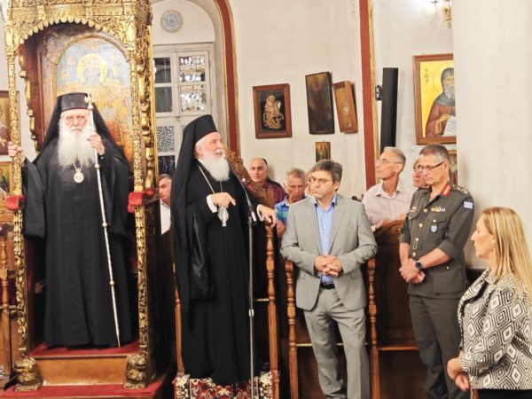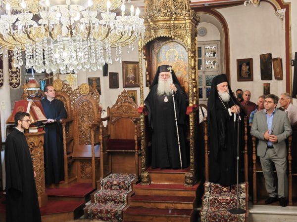 Μετά την υποδοχή ακολούθησε Αρχιερατικός Εσπερινός χοροστατούντος του Σεβασμιωτάτου Μητροπολίτου κ. Νεκταρίου και συμπροσευχόμενου του επιχώριου Μητροπολίτου κ. Ιεροθέου.