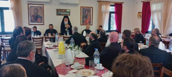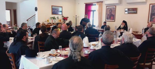 Ευθύς αμέσως μετά τη λήξη της Θ. Λειτουργίας πραγματοποιήθηκε Ιερατική Σύναξη, κατά την οποία απευθυνόμενος στο Ιερατικό Σώμα της Τοπικής Εκκλησίας, έδωσε αρχικά την ευλογία του και τις καρδιακές ευχές του υπογραμμίζοντας την επιτακτική ανάγκη να αναλογιστούμε την πνευματική μας ευθύνη έναντι του υψηλού υπουργήματος της Ιερωσύνης.