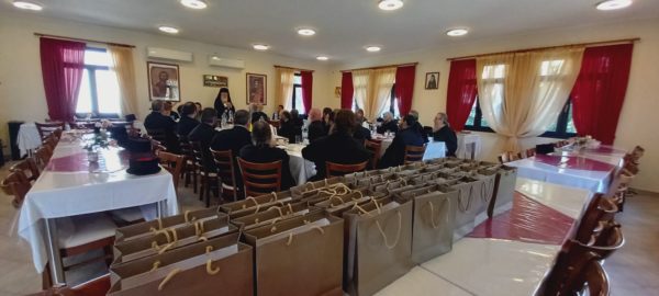 Η Ιερατική Σύναξη ολοκληρώθηκε με την παράθεση δοχής και τη δωρεά ενός ιερατικού βιβλίου και άλλων ψυχωφελών εντύπων προς όλους τους εφημερίους της Ιεράς Μητροπόλεως, εκφράζοντας, και δια αυτού του τρόπου, την πατρική του αγάπη και τον έπαινό του στους αγαθούς και ακάματους λευίτες της Τοπικής Εκκλησίας, οι οποίοι με ιερατικό ήθος και θυσιαστική αγάπη αναλώνονται καθημερινά κάτω από αντίξοες συνθήκες στον αμπελώνα του Κυρίου μας, υπηρετώντας στην ακριτική αυτή έπαλξη της Πατρίδος.