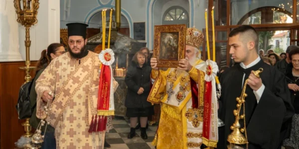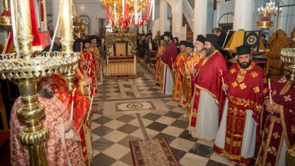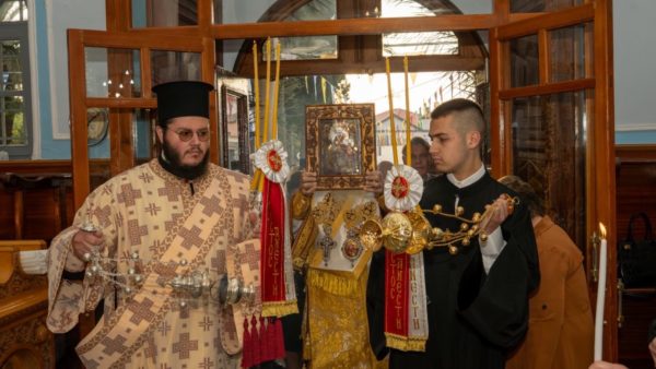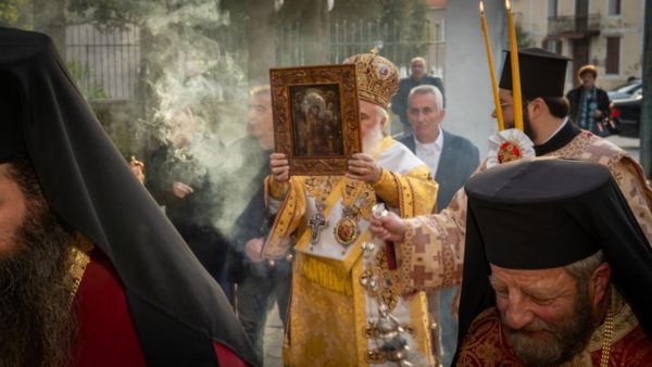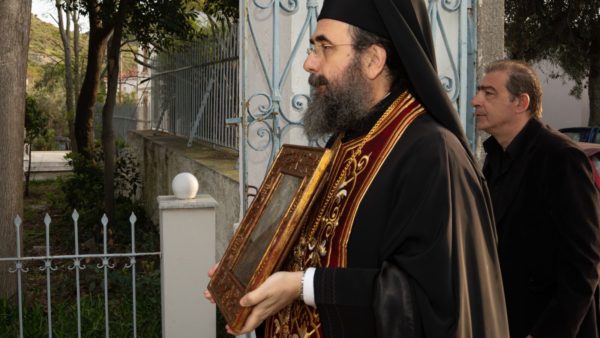 Αναλυτικότερα, τη Δευτέρα της Διακαινησίμου, το απόγευμα, παραμονή της Εορτής, ο προσφάτως ανακαινισθείς και εξωραϊσθείς Ιερός Ναός Κοιμήσεως της Θεοτόκου Μυρίνης έγινε το επίκεντρο των λατρευτικών εκδηλώσεων, όπου σύσσωμος ο ιερός κλήρος και ο ευσεβής λαός, προεξάρχοντος του Σεβασμιωτάτου Μητροπολίτου Λήμνου και Αγίου Ευστρατίου κ. Ιεροθέου, υποδέχθηκε την εμβληματική Ιερά Εικόνα της Υπεραγίας Θεοτόκου, της καλουμένης Κακαβιωτίσσης.
