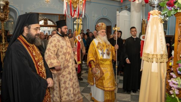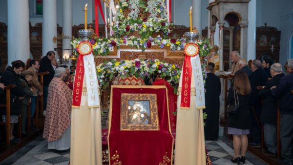 Καθ’ όλη τη διάρκεια του Πανηγυρικού Εσπερινού που ακολούθησε, ευλαβείς προσκυνητές συνέρρεαν από κάθε γωνιά του νησιού, προκειμένου να προσκυνήσουν το ιερότερο πνευματικό θησαύρισμα, το οποίο κατέχει από αιώνων η Τοπική Εκκλησία, και να καταθέσουν στη Μητέρα του Θεού «ὡς εὐεργετηθέντες ὑπ’ Αὐτῆς τά εὐχαριστήρια».