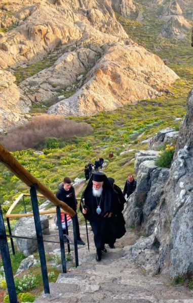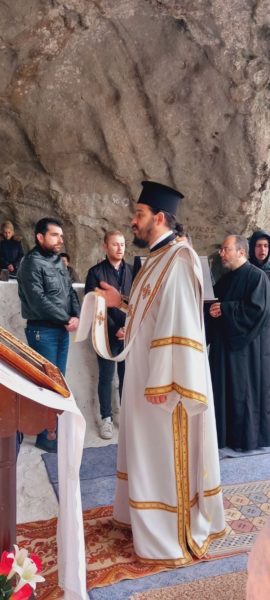Την επομένη, Τρίτη της Διακαινησίμου 18 Απριλίου 2023, ημέρα της εορτής της Παναγίας της Κακαβιωτίσσης, ο Σεβασμιώτατος πάρα τις αντίξοες καιρικές συνθήκες ανήλθε στο σπηλαιώδη Ναό Της στο όρος Κάκαβο, συνοδευόμενος από τον Πρωτοσύγκελλο της Ιεράς Μητροπόλεώς Πανοσιολ. Αρχιμ. π. Ιερώνυμο Σχίζα, τους Αιδεσιμολ. Πρωτ. π. Ηλία Λασπατζάκη και π. Σταύρο Λάδη, τον Ιερολ. Διακ. π. Κυριακό Δημητριάδη και πλήθος πιστών προσκυνητών, όπου και χοροστάτησε στην καθιερωμένη Θεία Λειτουργία που τελέστηκε, υπό πρωτόγνωρες συνθήκες με καταρακτώδη βροχή, αλλά και με έκδηλη τη χαρά των προσκυνητών, που με πανηγυρική διάθεση έψαλλαν το Χριστός Ανέστη, επικαλούμενοι στη ζωή τους την σκέπη της Υπεραγίας Θεοτόκου.