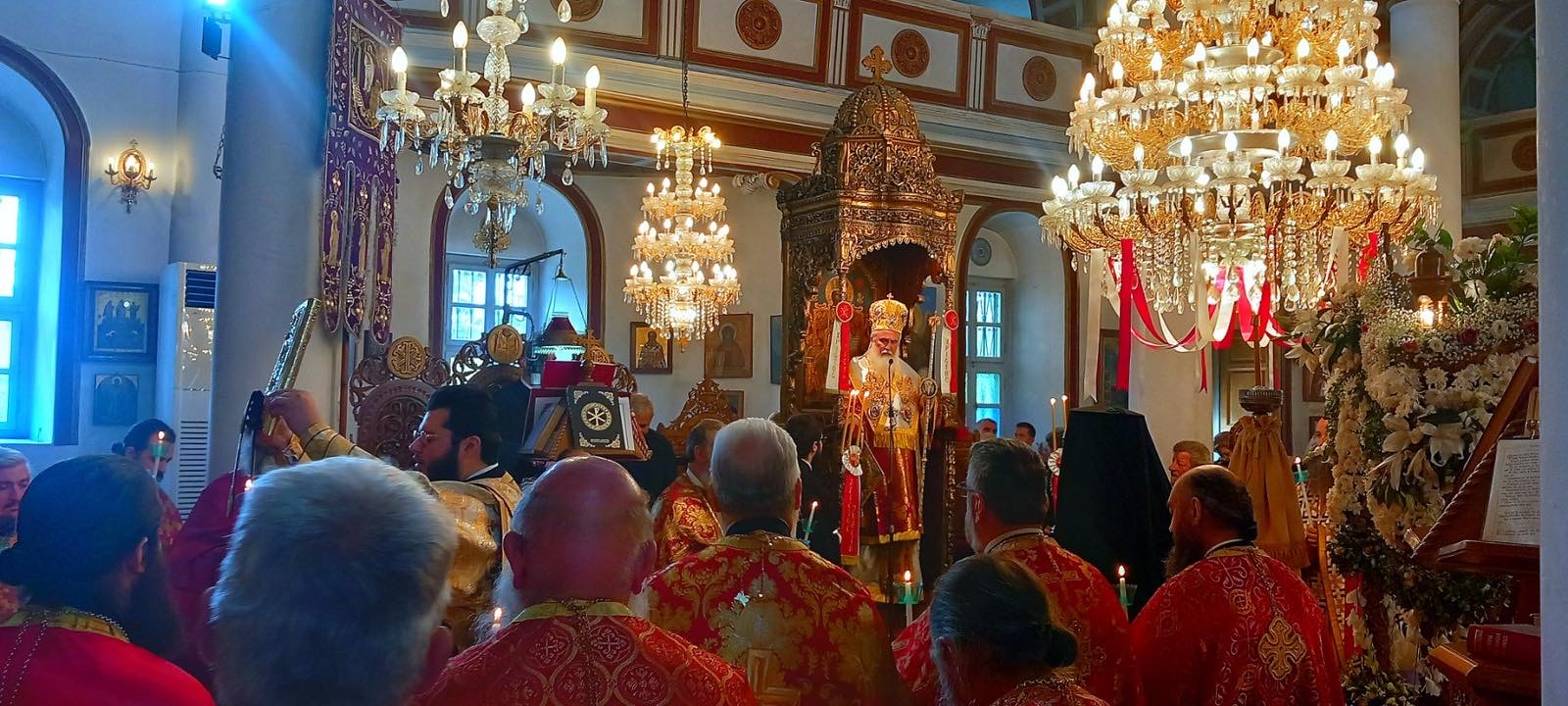Στη συνέχεια, τελέσθηκαν ο Πανηγυρικός Όρθρος και η Αναστάσιμη Θ. Λειτουργία, ιερουργούντος του Σεβ. κ. Ιεροθέου, ενώ αξιοσημείωτο είναι το γεγονός ότι καθ’ όλη τη διάρκεια των ιερών ακολουθιών ο Ναός ήταν κατάμεστος από ευλαβείς χριστιανούς, τα πρόσωπα των οποίων «έλαμπαν απ’ τ’ αγιοκέρι που κρατούσανε στο χέρι», όπως εμπνευσμένα έγραψε ο εθνικός μας ποιητής, και οι οποίοι αγρύπνησαν, προκειμένου να προσέλθουν, «ψυχαῖς καθαραῖς καί ἀρρυπώτοις χείλεσι», στο Ποτήριο της Ζωής και να ενωθούν με τον Αναστάντα Κύριο.