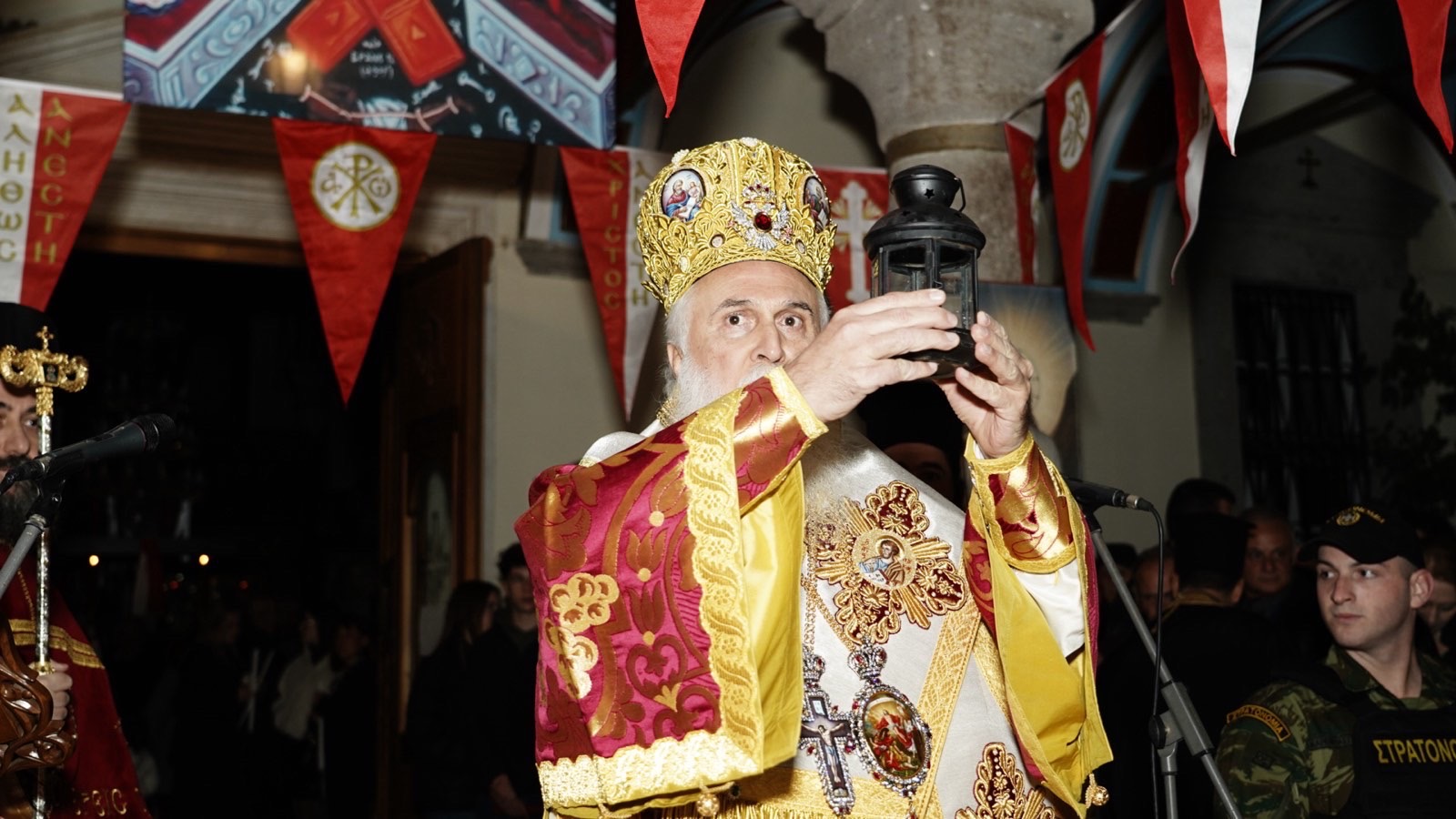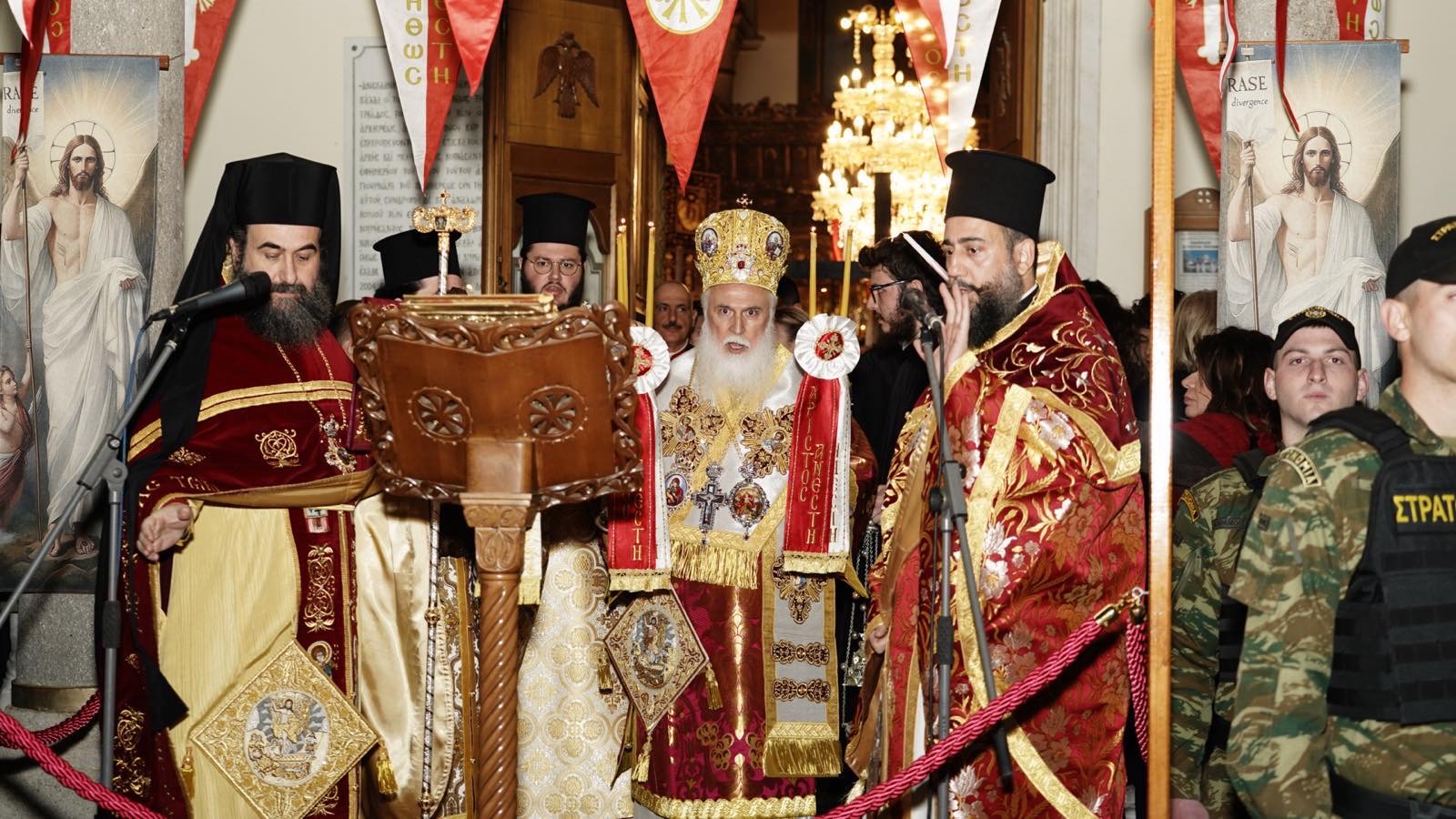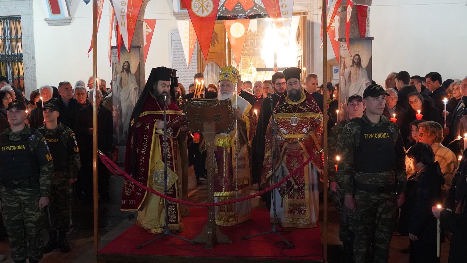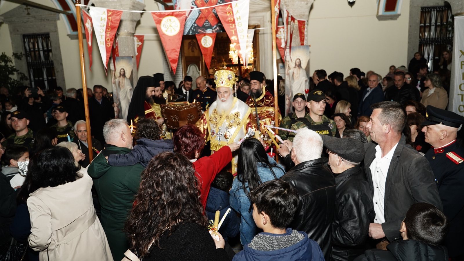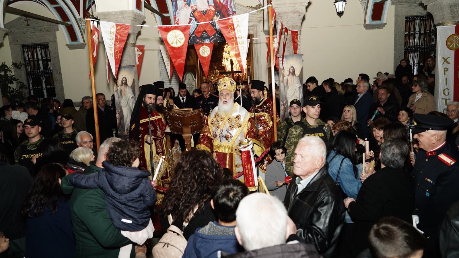 Ακολούθως, μέσα σε μια ατμόσφαιρα αληθινής μυσταγωγίας και με τη συμμετοχή πλήθους πιστών, οι οποίοι κατέκλυσαν τον Μητροπολιτικό Ναό και τον περιβάλλοντα χώρο, προκειμένου να λάβουν το κοσμοσωτήριο μήνυμα ότι «Ἀνέστη Χριστός καί ζωή πολιτεύεται» και να γευθούν τη χαρά που εκπηγάζει από τον Πανάγιο Τάφο, πραγματοποιήθηκε η Τελετή της Αναστάσεως. Με το άκουσμα του εμβληματικού παιάνα «Χριστός Ανέστη», τα ολόφωτα κωδωνοστάσια του Ναού σήμαναν χαρμόσυνα, ο δε ουρανός καταστολίστηκε από πυροτεχνήματα, δημιουργώντας μια μοναδική αίσθηση ιερότητας και συγκίνησης.