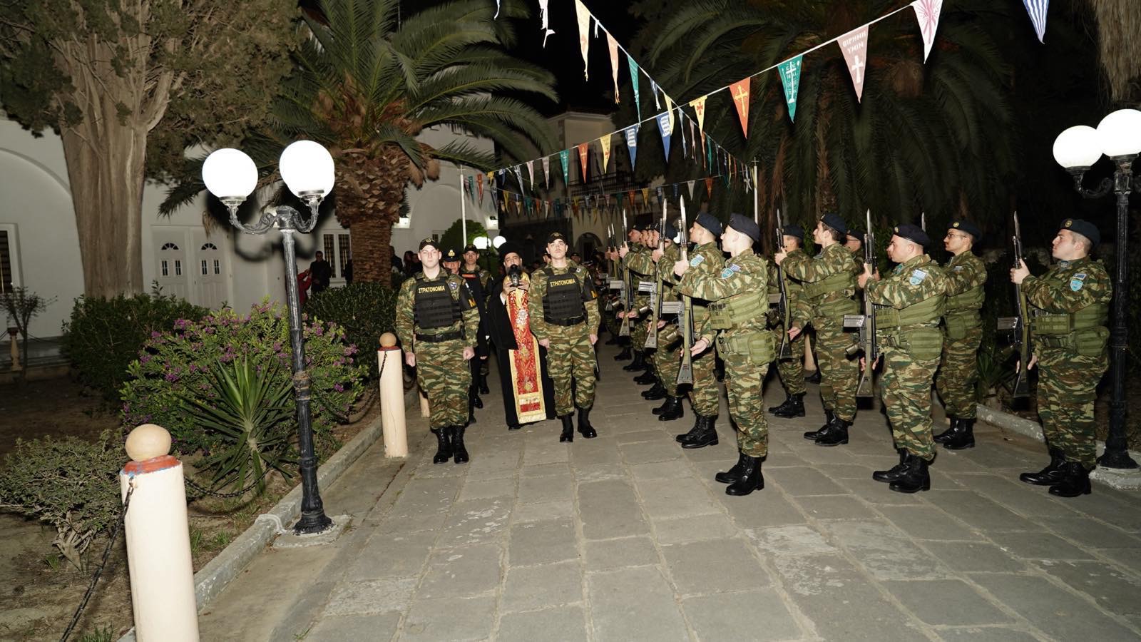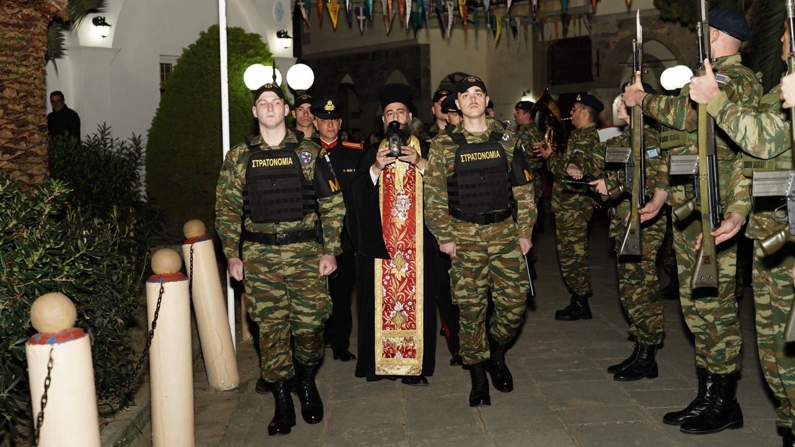 Αναλυτικότερα, το βράδυ του Μ. Σαββάτου τελέσθηκε η ακολουθία της Παννυχίδος, προ του τέλους της οποίας ο Σεβ. Μητροπολίτης Λήμνου και Αγίου Ευστρατίου κ. Ιερόθεος, υποδέχθηκε στα προπύλαια του Ναού το Άγιο Φως, ενώ το στρατιωτικό άγημα απέδωσε τις προσήκουσες τιμές, παιανίζοντας εόρτια εμβατήρια.