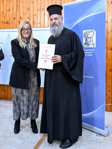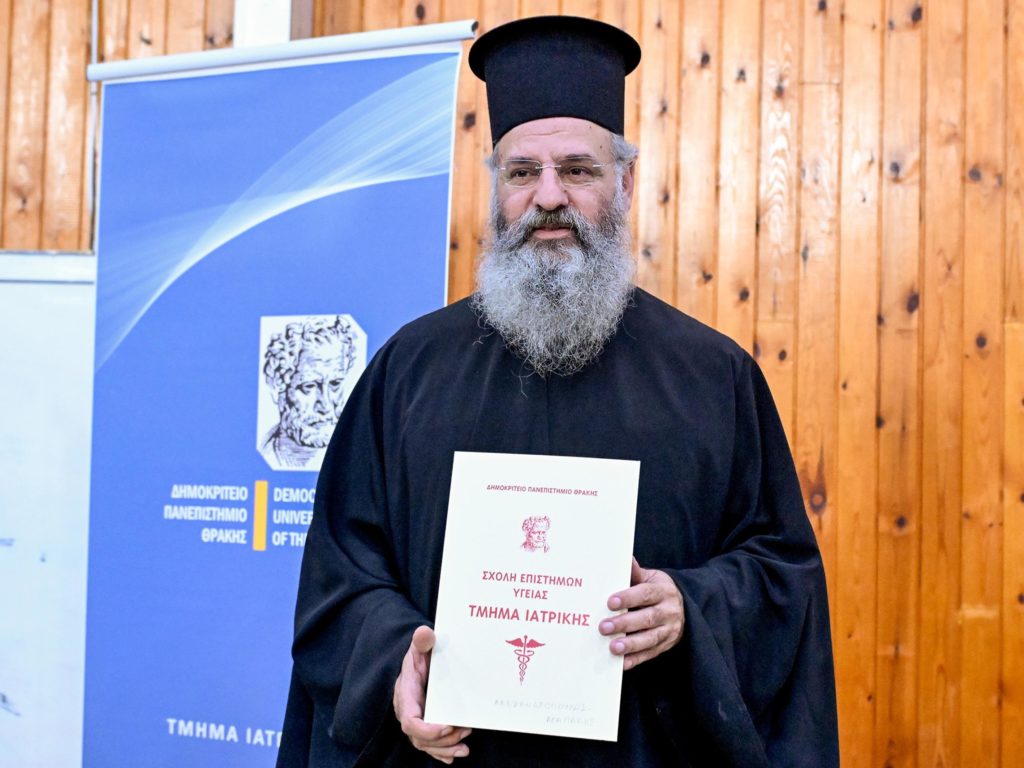 Ο Αρχιμανδρίτης Κύριλλος, ο οποίος αρίστευσε με βαθμό 10 στην διπλωματική εργασία, με θέμα: «Ο θάνατος ως λύτρωση ή ως φυσική κατάληξη. Θεολογική (Ορθόδοξη & Ισλαμική) προσέγγιση και βιοηθικά διλήμματα.», παρέλαβε το δίπλωμα του και δήλωσε: