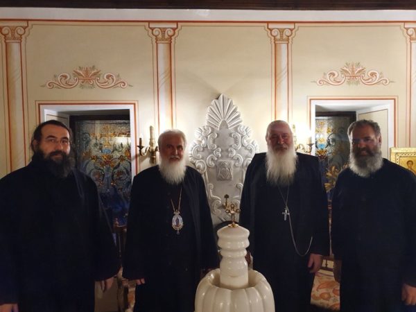 Ο Σεβασμιώτατος κ. Ιερόθεος και η συνοδεία του, αφού πήραν Μοναστηριακό κέρασμα στο παραδοσιακό σε τέχνη αρχονταρίκι της Ιεράς Μονής, ξεναγήθηκαν σε όλους τους χώρους, ιδιαιτέρως δε στο Καθολικό και στο Μουσείο, όπου με έκπληξη θαύμασαν αγιογραφίες με αναφορές στην ελληνική γλώσσα, μεταξύ των οποίων και ελλήνων φιλοσόφων (Αριστοτέλη, Θεόφραστου, Πλάτωνος, Πλουτάρχου, Πυθαγόρα, Πλωτίνου κ. ά.), όπως για ουσιαστικούς λόγους ιστορούνται και σε πρόναους πολλών Ι. Μονών του Αγίου Όρους.