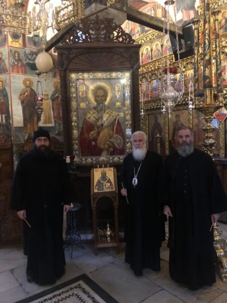 Ο Σεβασμιώτατος κ. Ιερόθεος και η συνοδεία του, αφού πήραν Μοναστηριακό κέρασμα στο παραδοσιακό σε τέχνη αρχονταρίκι της Ιεράς Μονής, ξεναγήθηκαν σε όλους τους χώρους, ιδιαιτέρως δε στο Καθολικό και στο Μουσείο, όπου με έκπληξη θαύμασαν αγιογραφίες με αναφορές στην ελληνική γλώσσα, μεταξύ των οποίων και ελλήνων φιλοσόφων (Αριστοτέλη, Θεόφραστου, Πλάτωνος, Πλουτάρχου, Πυθαγόρα, Πλωτίνου κ. ά.), όπως για ουσιαστικούς λόγους ιστορούνται και σε πρόναους πολλών Ι. Μονών του Αγίου Όρους.