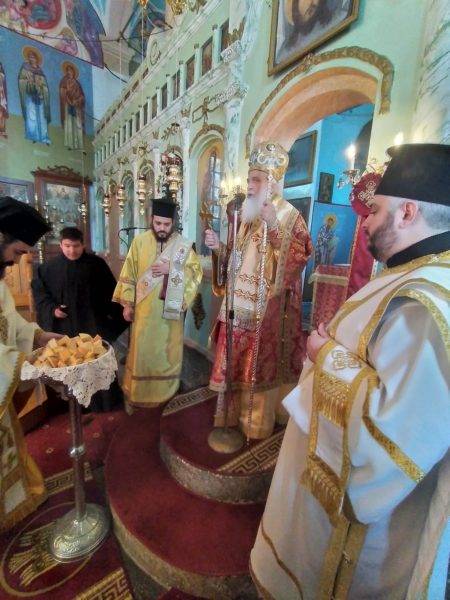 Την αγιώνυμο ημέρα, τελέστηκε ο πανηγυρικός Όρθρος και η Θεία Λειτουργία ιερουργούντος του Σεβ. Μητροπολίτου κ. Ιεροθέου, ο οποίος στο κήρυγμά του εξήρε την απαράμιλλη πίστη και το γενναίο φρόνημα του Μεγαλομάρτυρος Γεωργίου, αλλά και την καλή μαρτυρία που άφησε ως ιερά παρακαταθήκη προκειμένου εμπνέει στον πνευματικό αγώνα που πρέπει να δίνει καθημερινά στη ζωή του κάθε πιστός.